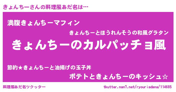 | ヘコむあだ名 | 『きょんちー(爆)』『きょを』『豆乳』 |