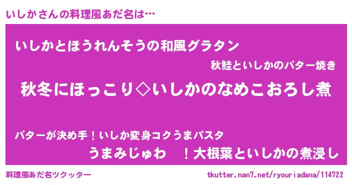 | ヘコむあだ名 | 『なまこ酢』『いしか(小並感)』 |