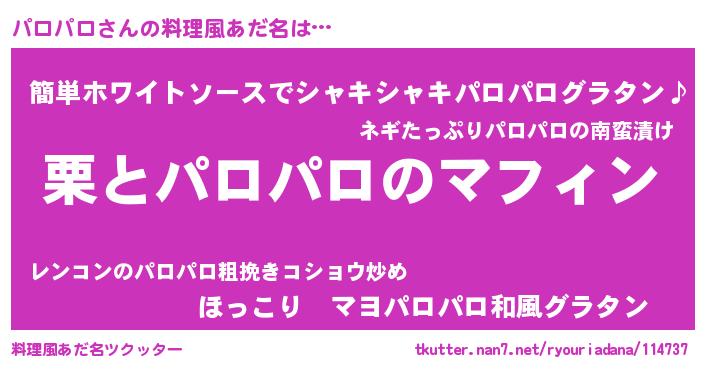 | ヘコむあだ名 | 『パロお』『パロにゅー』『なまこ酢』 |
