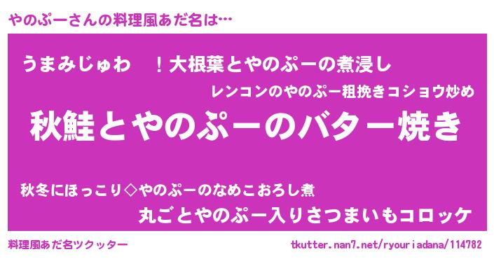 | ヘコむあだ名 | 『やのぷー(苦笑)』『つくし』 |