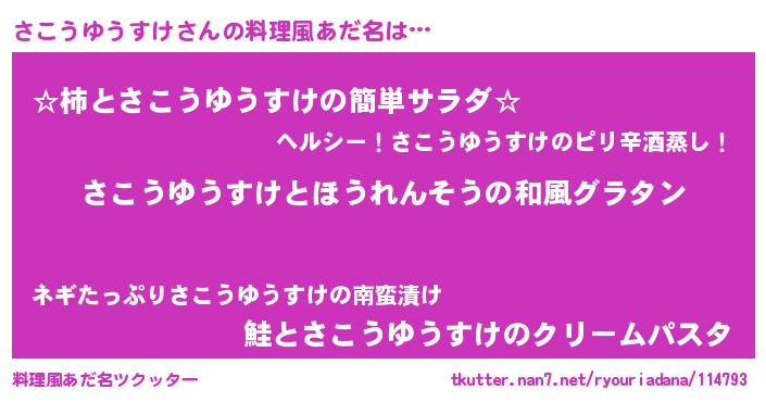 | 女子向けラノベタイトル風あだ名 | 『さこうゆうすけの玉の輿計画!』 |