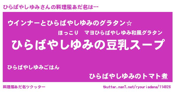 | ポケモン風あだ名 | 『ヒヒラバヤシユミ』『ヒラバダネ』 |