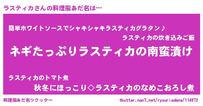 | 胡散臭い通販商品みたいなあだ名 | 『億万長者になれるブレスレット…その名も「ラスティカ」』 |