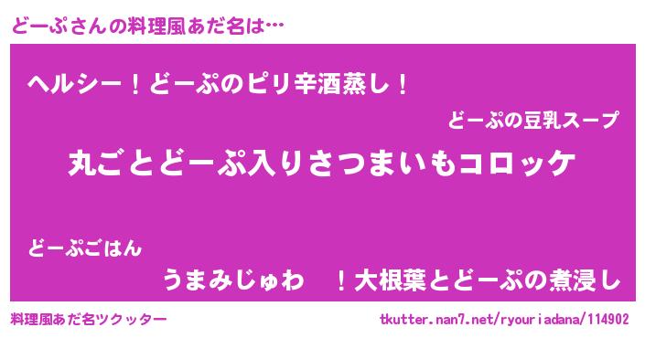 | 男性向けラノベタイトル風あだ名 | 『この素晴らしい世界にどーぷを!』 |