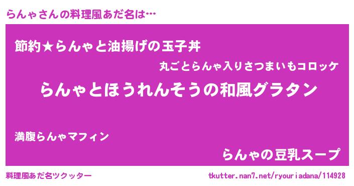 | ヘコむあだ名 | 『らんにゅー』『らんっちょ』 |
