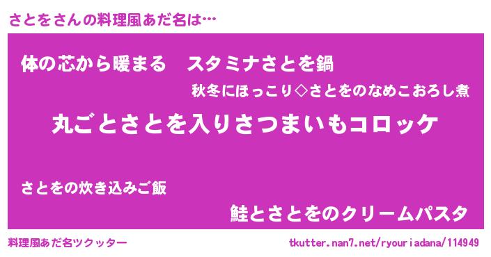 | 意味不明あだ名 | 『住所不定無職さとを(65歳)』 |