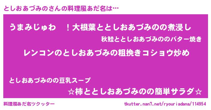 | 意味不明あだ名 | 『自称としおあづみの』 |