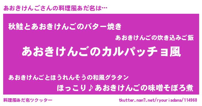 | ヒーロー風カッコイイあだ名 | 『仮面アオダー』『ネオアオキケンゴ』 |