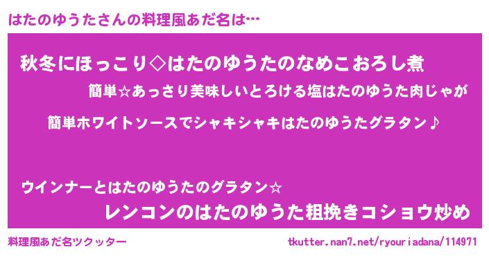 | 男性向けラノベタイトル風あだ名 | 『はたのゆうたの嫁は女の子じゃないと思った?』 |
