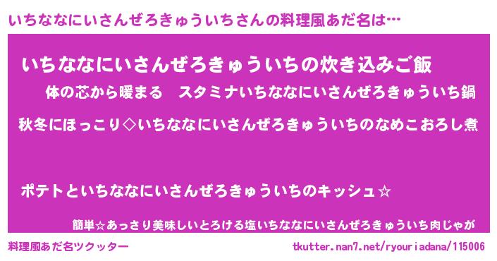| 意味不明あだ名 | 『永久保存いちななにいさんぜろきゅういち』 |