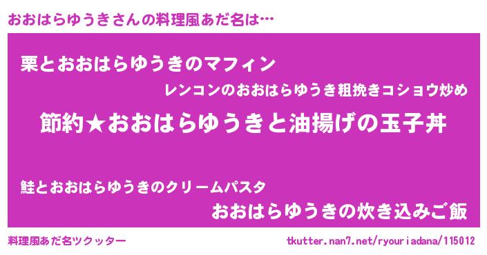 | 恥ずかしいあだ名 | 『プリティーおおはらゆうき』『おおちん』 |