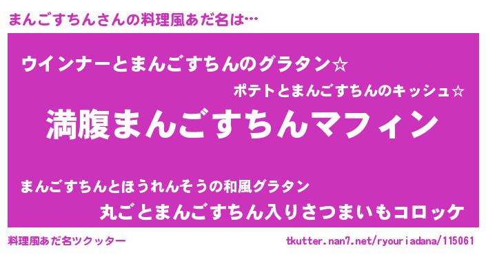 | 胡散臭い通販商品みたいなあだ名 | 『絶対に幸福をもたらす水素水…その名も「まんごすちん」』 |