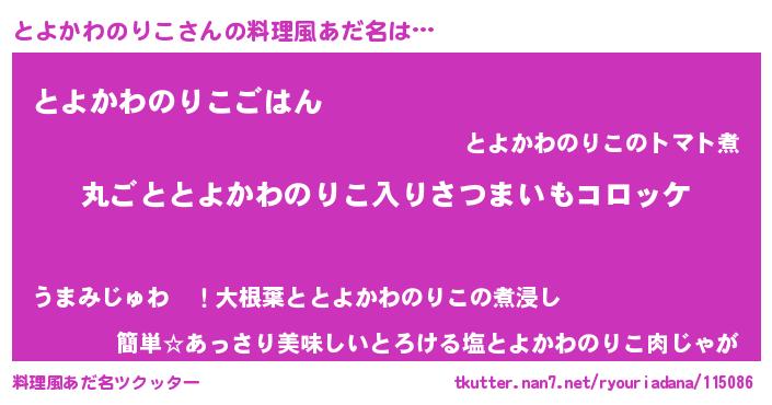 | 男性向けラノベタイトル風あだ名 | 『魔弾の王ととよかわのりこ』 |