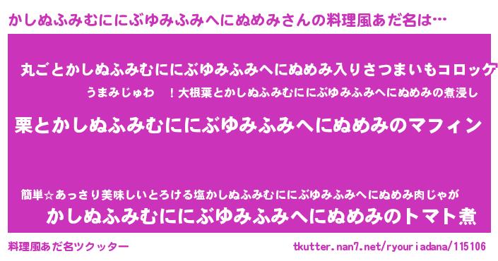 | 欧米人風あだ名 | 『アンジェラ・かしぬふみむににぶゆみふみへにぬめみ』 |