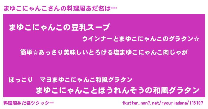 | 意味不明あだ名 | 『永久保存まゆこにゃんこ』 |