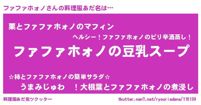 | 男性向けラノベタイトル風あだ名 | 『ダンジョンにファファホォノを求めるのは間違っているだろうか』 |