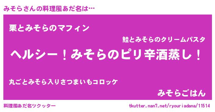 | 意味不明あだ名 | 『自称みそら』『なめこ科みそら属』 |