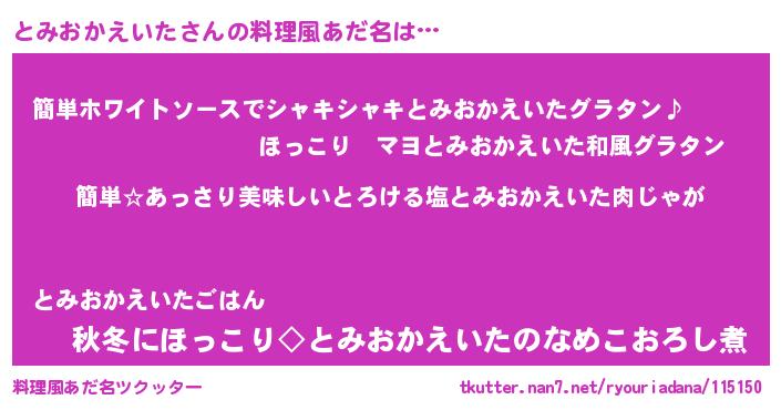 | ヘコむあだ名 | 『とみおかえいた(苦笑)』『とみ太郎』 |