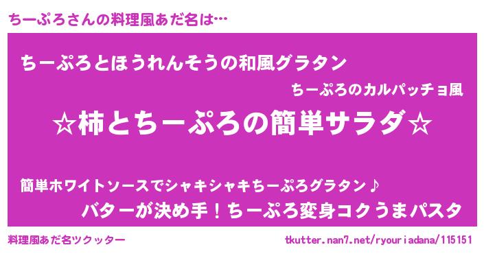 | 男性向けラノベタイトル風あだ名 | 『緋弾のチープロ』『魔弾の王とちーぷろ』 |