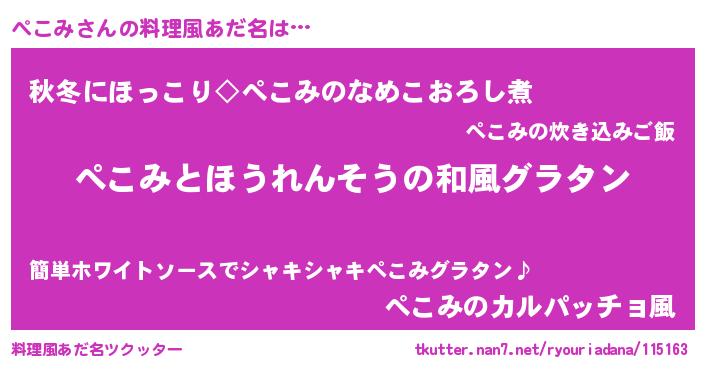 | 男性向けラノベタイトル風あだ名 | 『転生したらぺこみだった件』 |