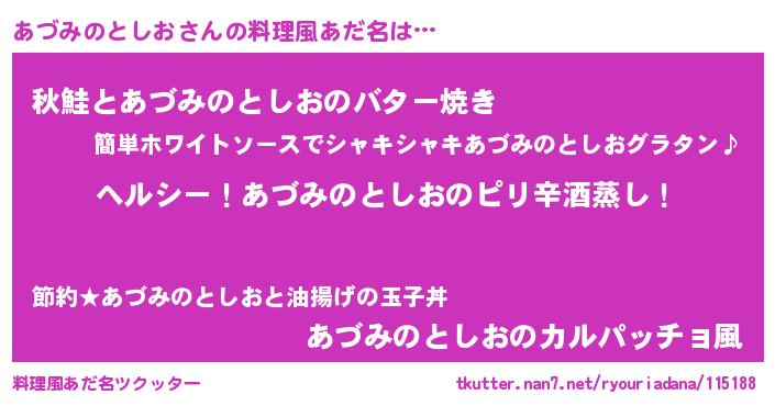 | ヘコむあだ名 | 『あづみのとしお(笑)』『あづっちょ』 |