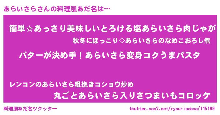 | 欧米人風あだ名 | 『ダニエルあらいさら』 |