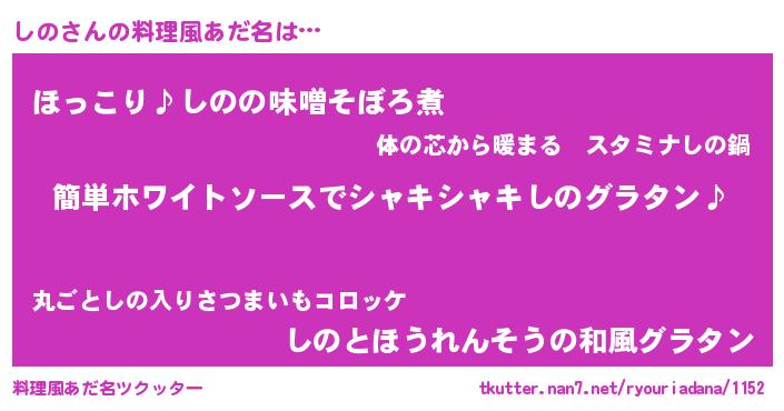 | 女子向けラノベタイトル風あだ名 | 『しの様がみてる』『しのの玉の輿計画!』 |