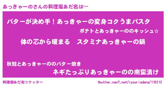 | 意味不明あだ名 | 『あっきゃーのフォーエバー』 |