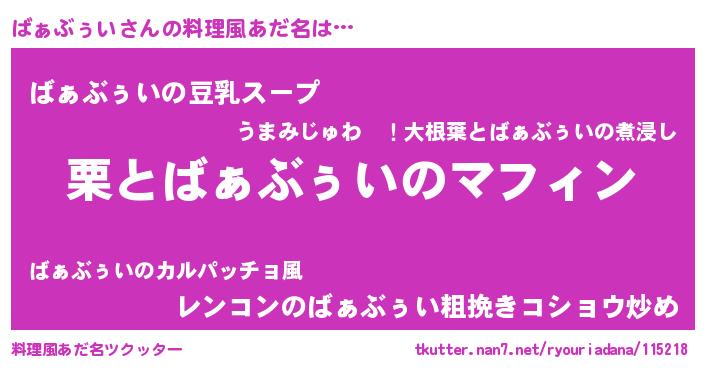 | ヒーロー風カッコイイあだ名 | 『暗黒騎士バァ』『超時空戦士バァブゥイ』 |