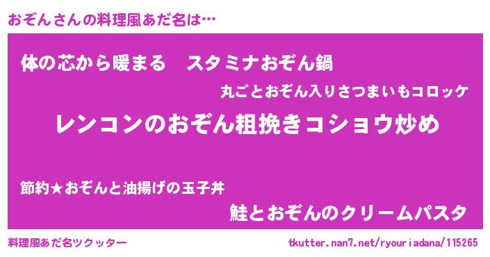 | ファンタジー風あだ名 | 『ゼオゾトゥ』『エターナルオゾンー』 |