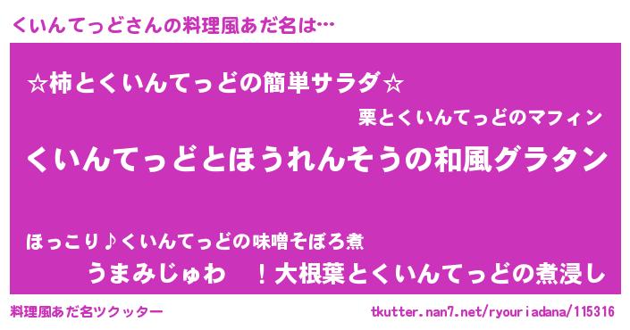 | 女子向けラノベタイトル風あだ名 | 『くいんてっどの玉の輿計画!』 |