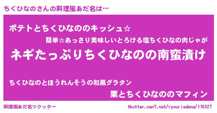 | 胡散臭い通販商品みたいなあだ名 | 『億万長者になれるブレスレット…その名も「ちくひなの」』 |