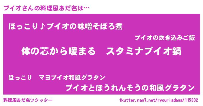| 意味不明あだ名 | 『ブイオフォーエバー』『ペロリンブイオ』 |