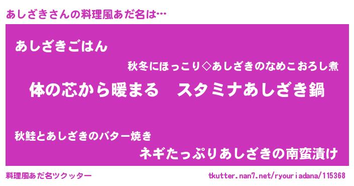 | 意味不明あだ名 | 『あしざきフォーエバー』『自称あしざき』 |