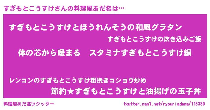 | ファンタジー風あだ名 | 『エターナルスギモトコウスケー』 |
