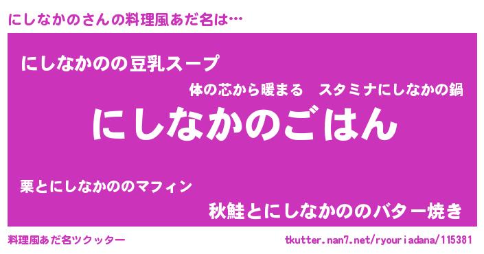 | 胡散臭い通販商品みたいなあだ名 | 『信頼と実績のサプリメント…その名も「にしなかの」』 |