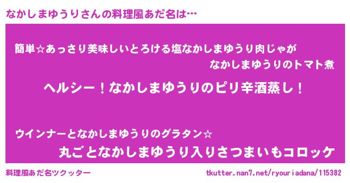 | 男性向けラノベタイトル風あだ名 | 『Re:なかしまゆうりから始める異世界生活』 |