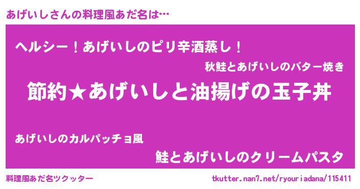 | 男性向けラノベタイトル風あだ名 | 『あげいしの憂鬱』『魔弾の王とあげいし』 |