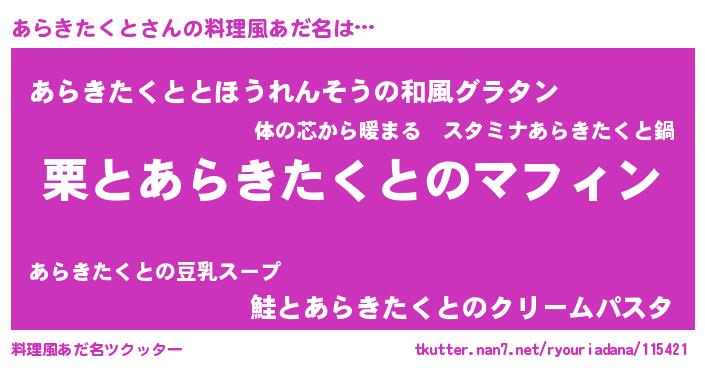 | 胡散臭い通販商品みたいなあだ名 | 『100人中100人が認めたマグネット磁石…その名も「あらきたくと」』 |