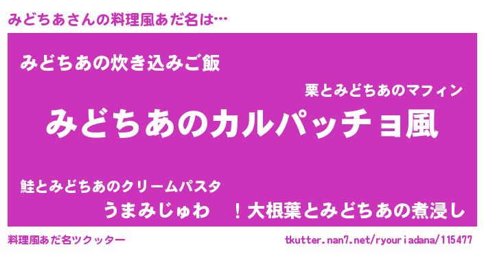| ヒーロー風カッコイイあだ名 | 『仮面ミドダー』『ウルトラみどちあマン』 |
