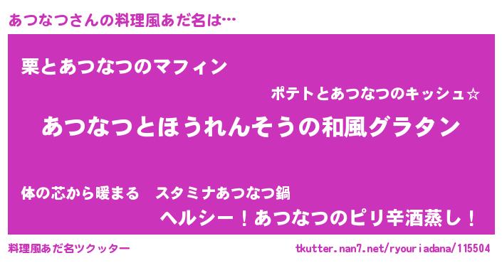 | ヘコむあだ名 | 『あつ太郎』『牛乳』『あつなつ(笑)』 |