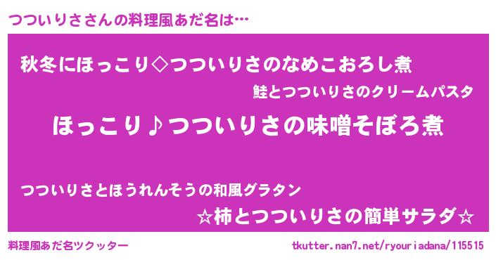 | ヘコむあだ名 | 『つつにゅー』『つついりさ(遠い目)』 |