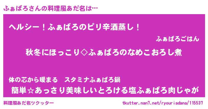 | 意味不明あだ名 | 『自称ふぁばろ』『永久保存ふぁばろ』 |