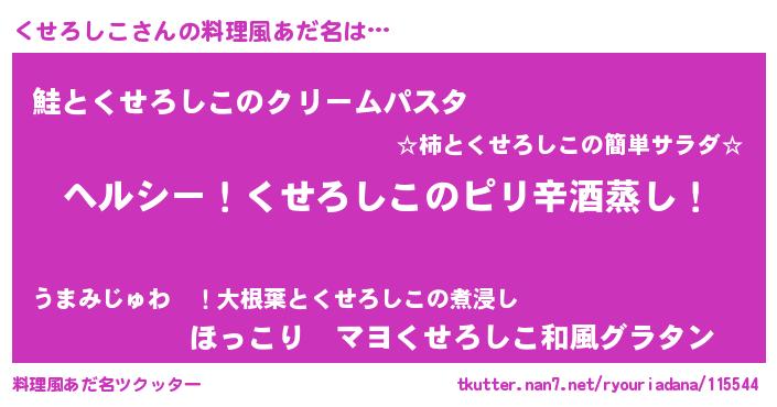 | 男性向けラノベタイトル風あだ名 | 『Re:くせろしこから始める異世界生活』 |