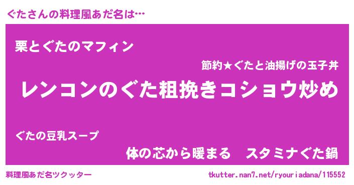 | 女子向けラノベタイトル風あだ名 | 『ぐたアンティーク』『ぐたの雑貨屋さん』 |