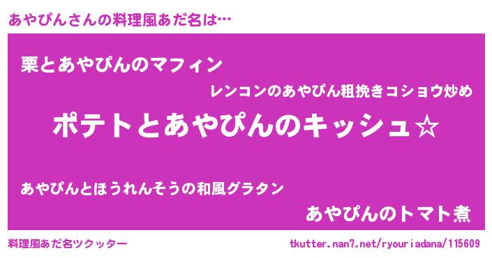 | ピコ太郎風あだ名 | 『アヤ三郎』『アア太郎』『ピコア郎』 |