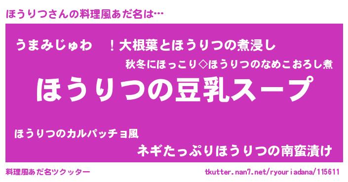 | ポケモン風あだ名 | 『ヒホウリツ』『ホウリダネ』 |