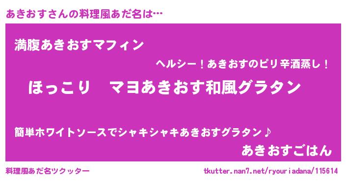 | 意味不明あだ名 | 『住所不定無職あきおす(84歳)』 |