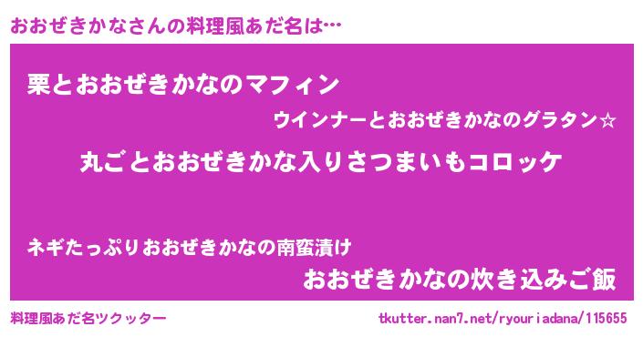 | 女子向けラノベタイトル風あだ名 | 『乙女ゲームの破滅フラグしかない悪役おおぜきかなに転生してしまった…』 |