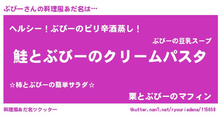 | 女子向けラノベタイトル風あだ名 | 『死神ぶびーの再婚』『闇のぶびー』 |